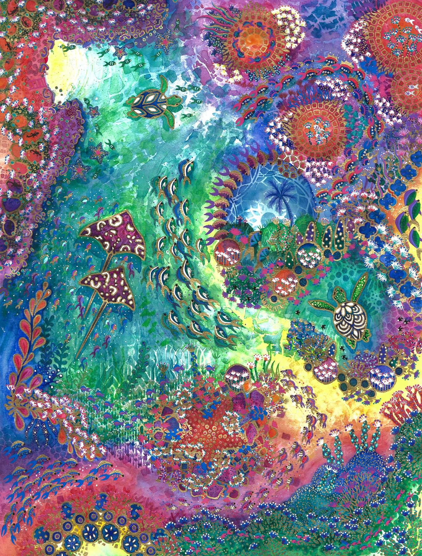 Watercolor with gel and gold