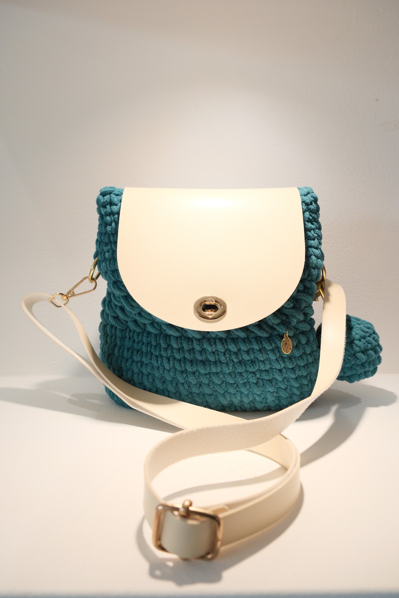 Teal & White Knitted Bag