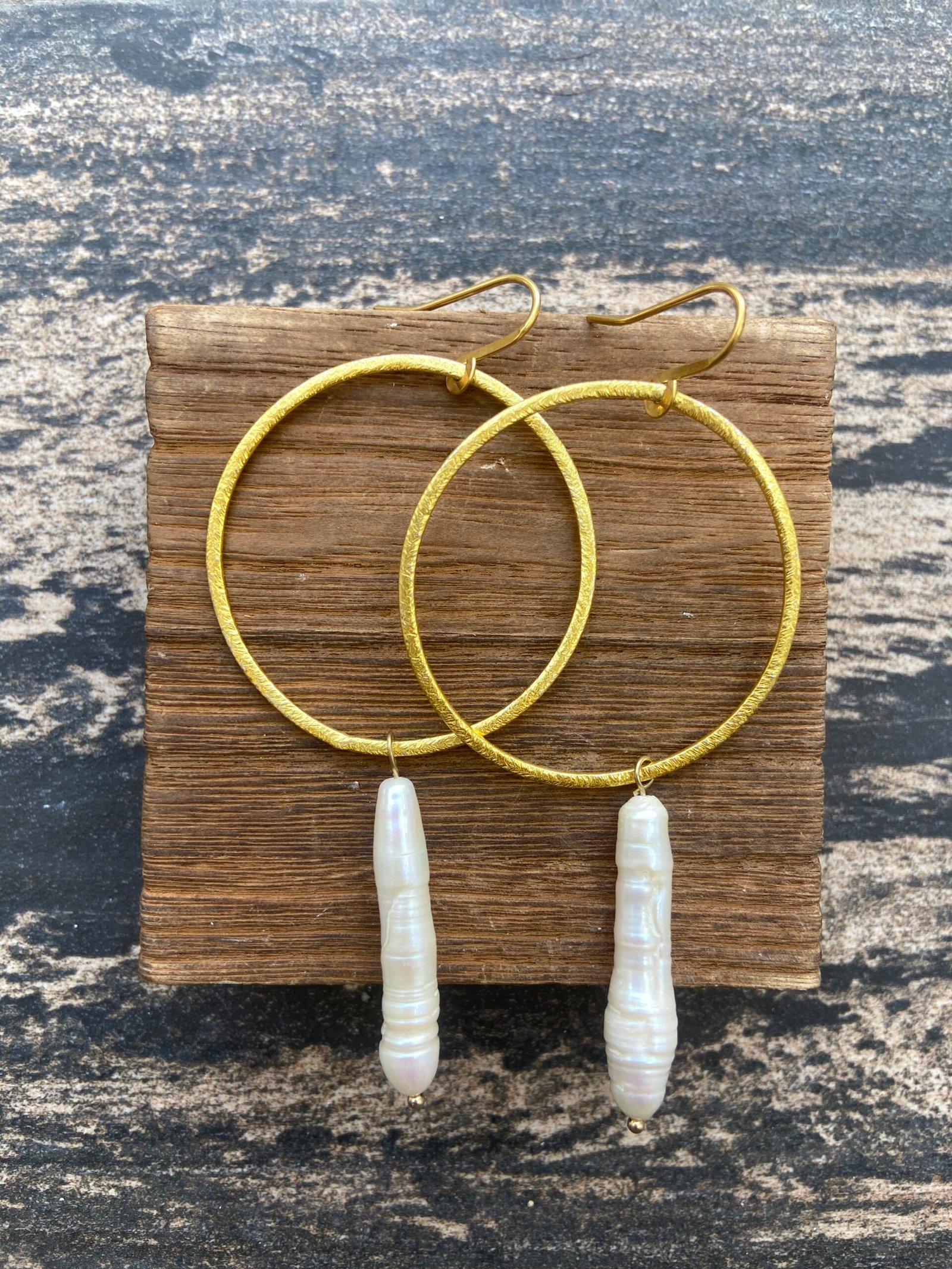 / Large hoop and stick pearl earring