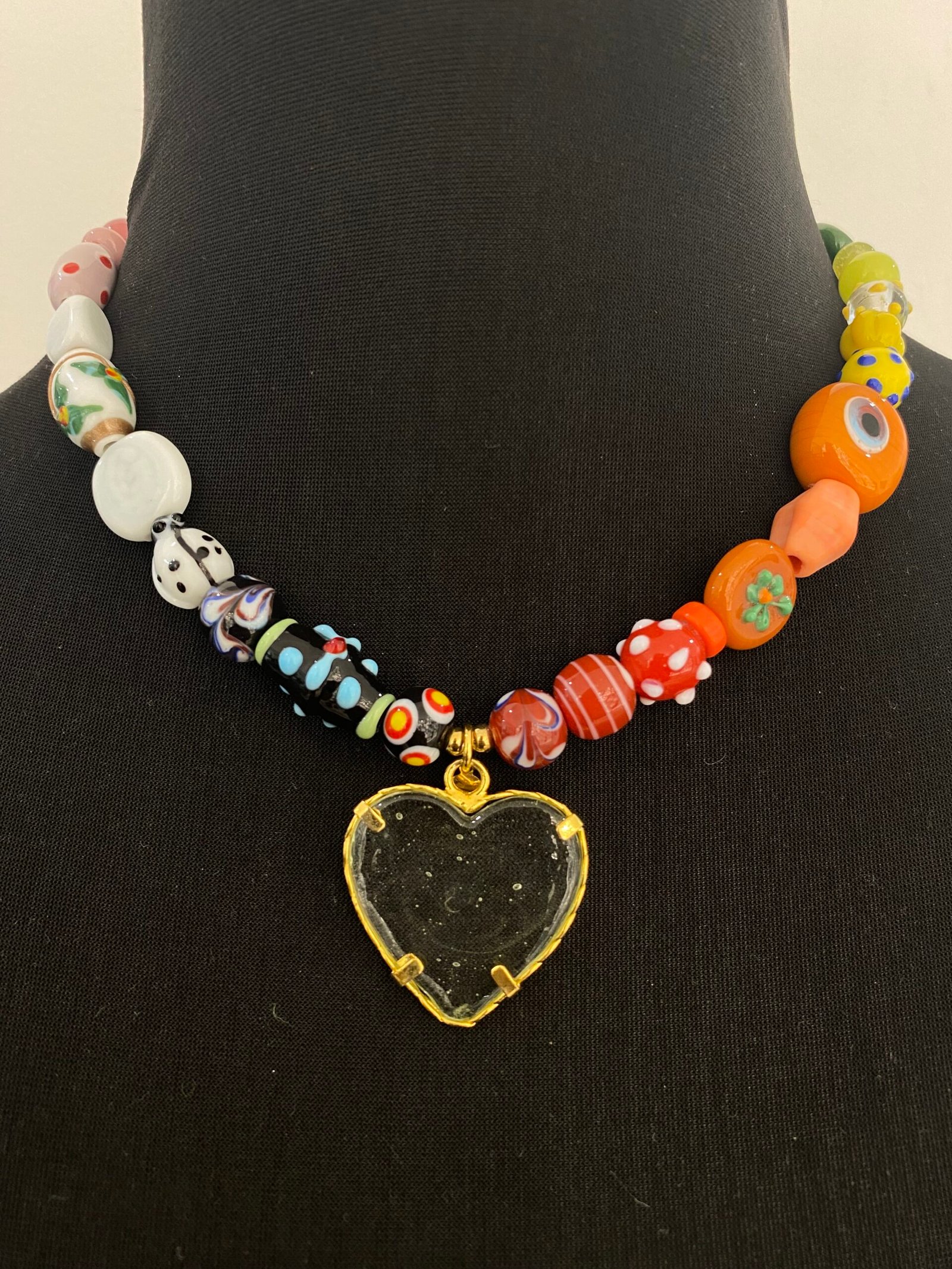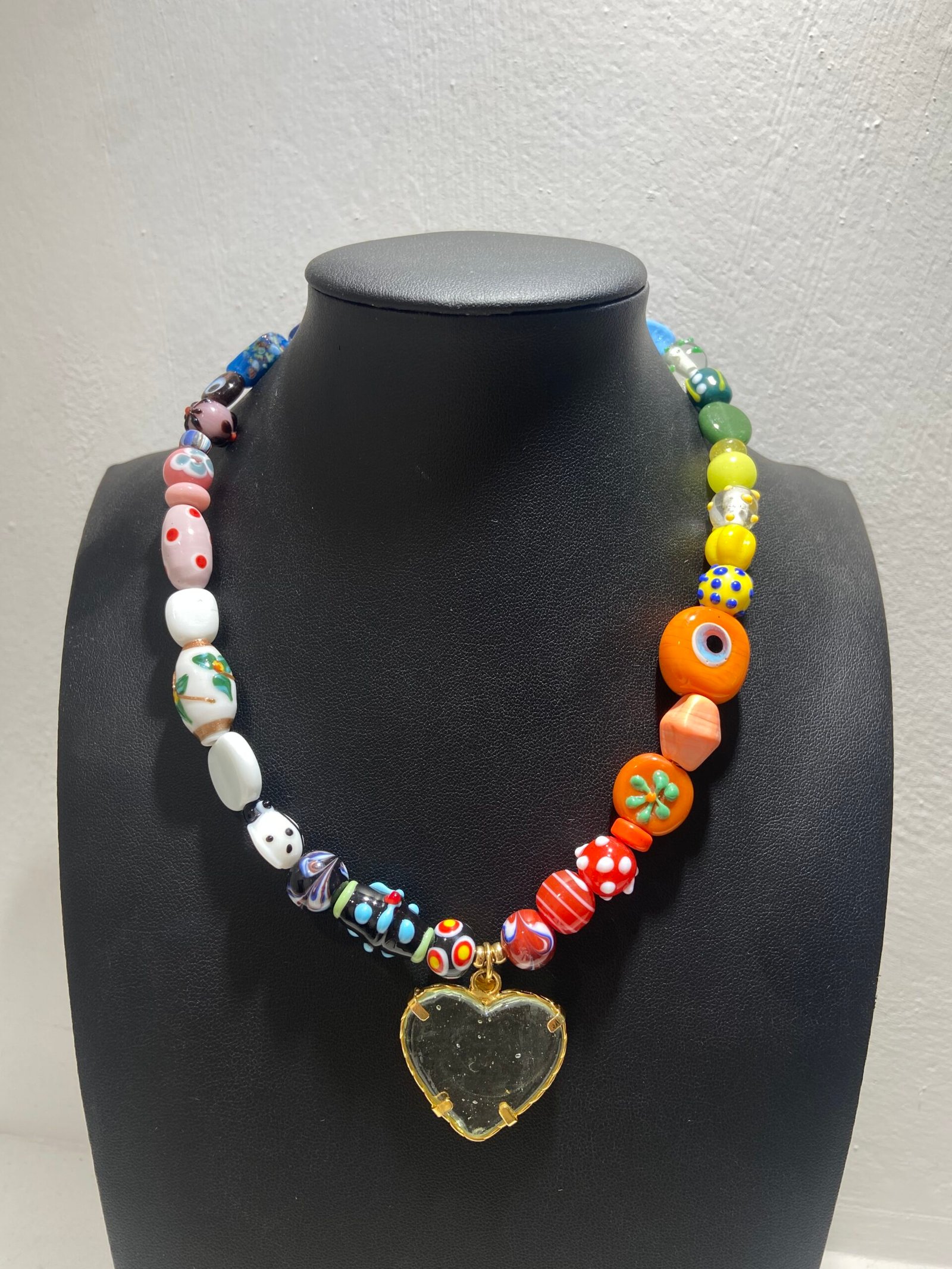 / Multicolored Necklace with glass heart