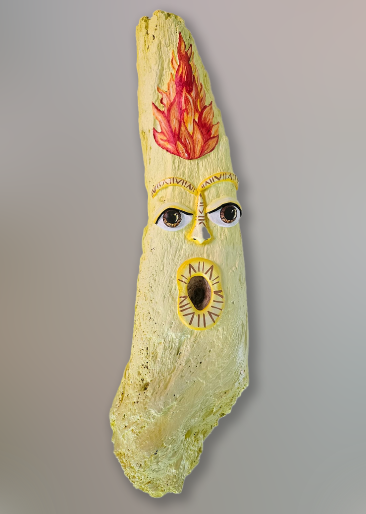 Alejandra Vellejo, The four Elements-Fire, Mixed Media(Drift Wood, Clay, Acrylic), 65x18cm,2025